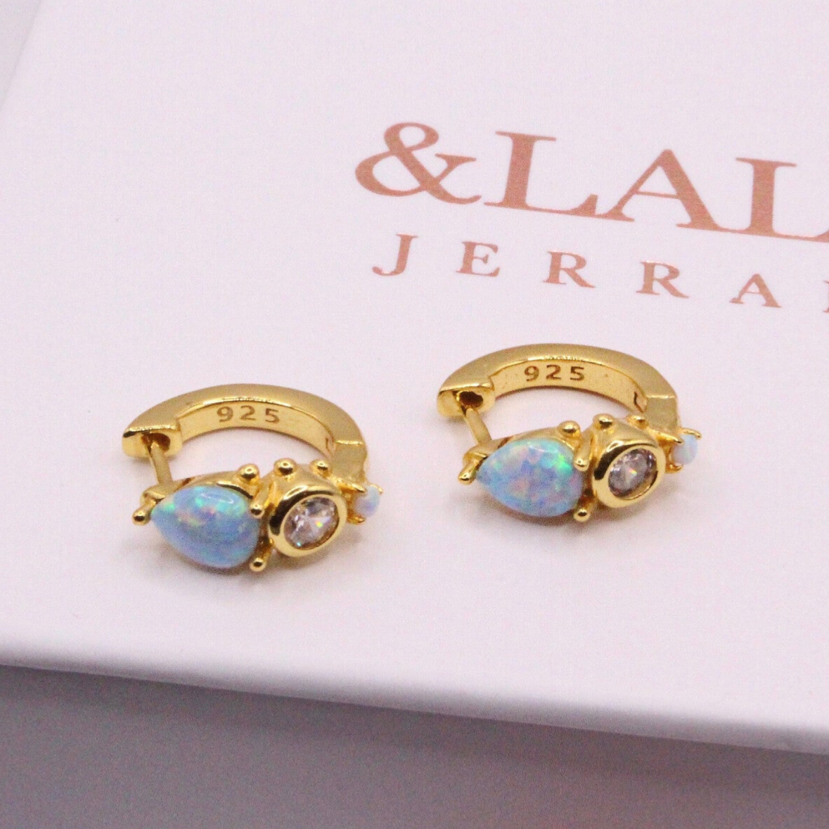 Stunning Blue Opal & Diamond Huggies