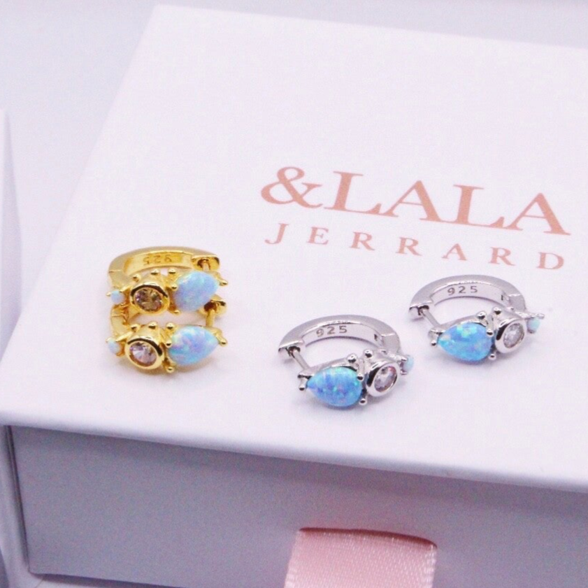 Stunning Blue Opal and Diamond Huggies