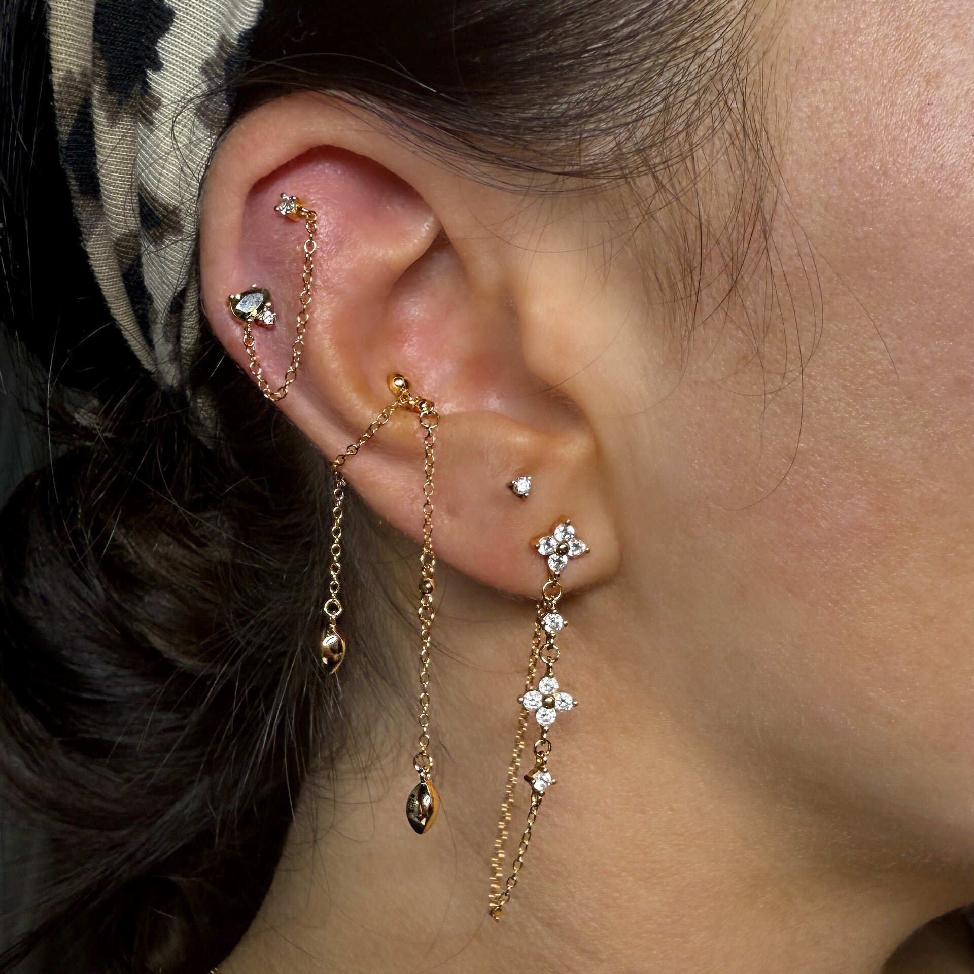 - Size: Ball stud: 3mm; Front drop: 5.5cm. Middle chain: 2.5cm. Back drop: 2.5cm.